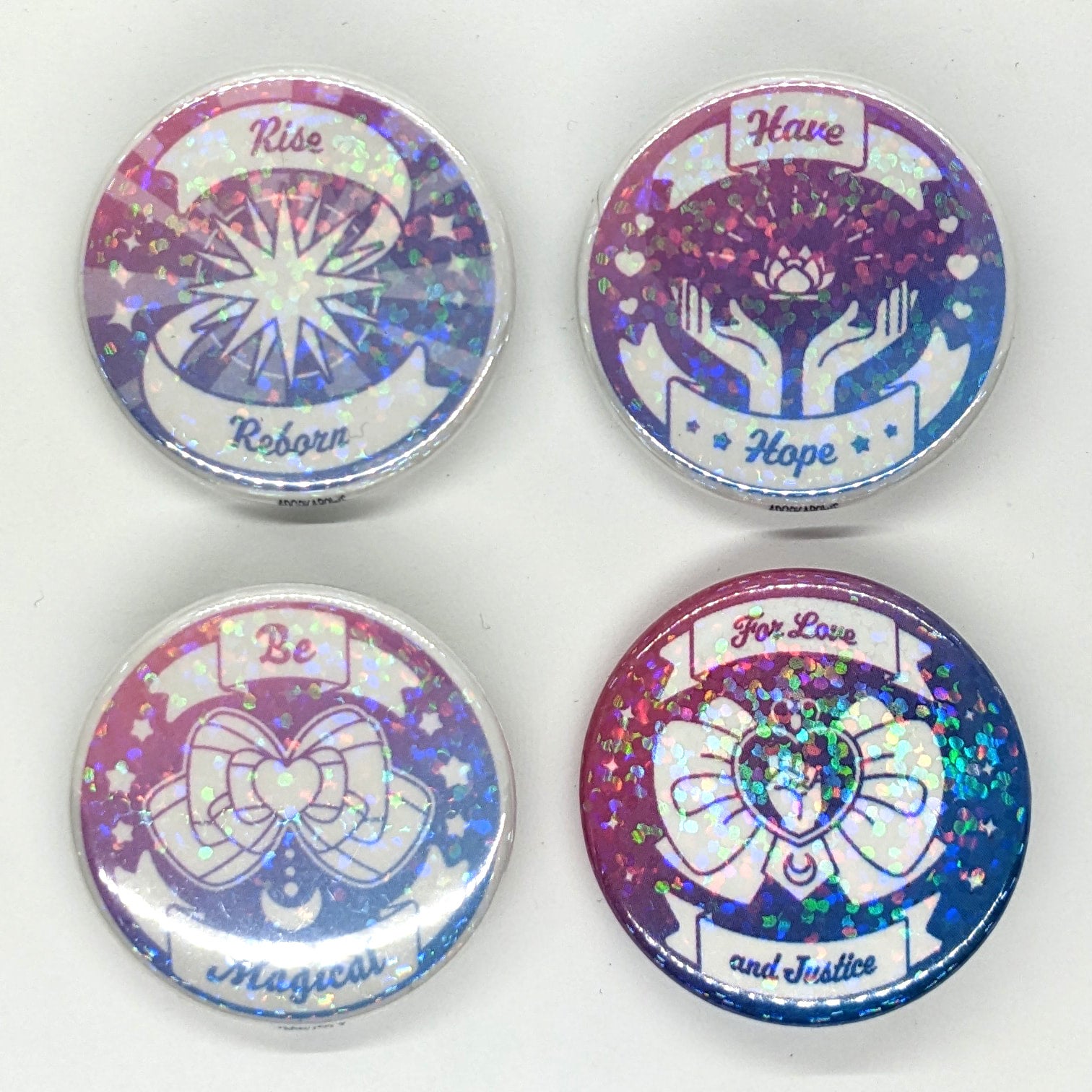 1.5″ round pin-back button Holographic print